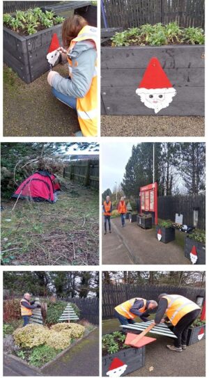 Holiday Preparations & Artistic Touches (December): The team installed Christmas decorations and trees, with volunteers performing necessary repairs. Artistic work was done on the faces of the raised beds, and gardening continued during favourable weather.