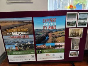 The Croston Archive already had their own photographs and plans of the local lines. Croston used to be double track main line to Liverpool – the Beeching cuts reduced the line to a single track branch line to Ormskirk. Croston was once a very busy station with its own goods yard and buildings. Coal, glass bottles, food and milk for the built-up towns, all added to the business of the time before motors took over. These old pictures were supplemented by up-to-date posters advertising local areas and lines by Richard Watts, from Community Rail Lancashire, together with pens, books and badges supporting the history of rail. We raised a small amount of money from the sale of Paul Salveson’s book, which will be used to purchase plants for the station platform.