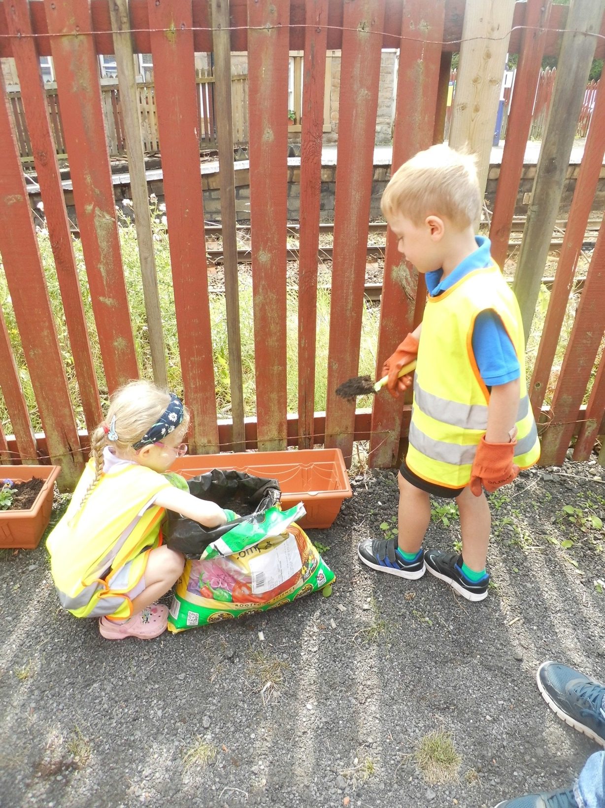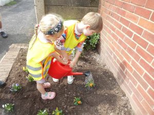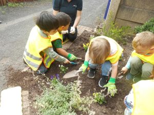 The children spoke about how it would be lovely to go and help out our new friends and show them how much we have learnt from our Secret Garden at nursery. A small group of children went along to the station and we even took some of our plants and tools to see if we could help by making their memory garden look at little brighter.
